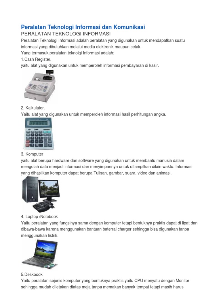 13 Peralatan Teknologi Informasi dan Komunikasi Komputer. Yang termasuk peralatan teknolgi Informasi adalah. Atau gambar dan melalui berbagai peralatan teknologi informasi dan komunikasi.