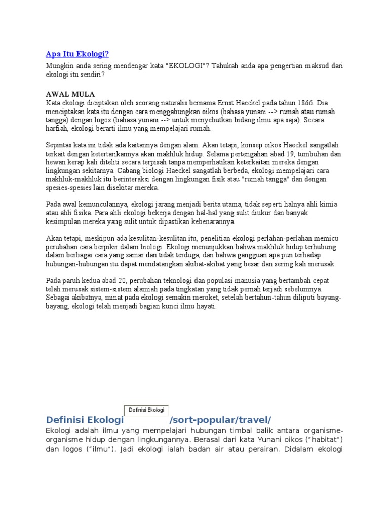 Teknologi adalah ilmu yang mempelajari hubungan timbal balik makhluk hidup dengan. Jadi secara harfiah ekologi memiliki arti ilmu tentang rumah tangga makhluk hidup. Ilmu yang mempelajari tentang serangga. Ekologi dikenal sebagai ilmu yang mempelajari hubungan timbal balik antara makhluk hidup dengan lingkungannya.
