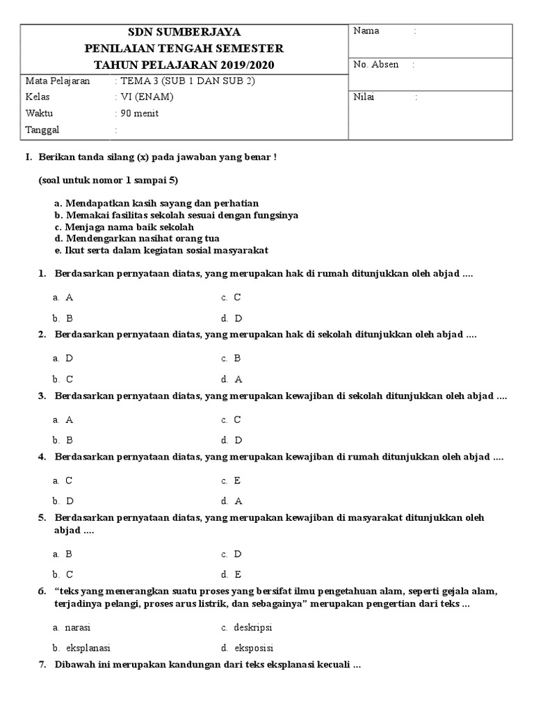 Soal Uts Kelas 6 Tema 3 Subtema 1 2 Antapedia Com
