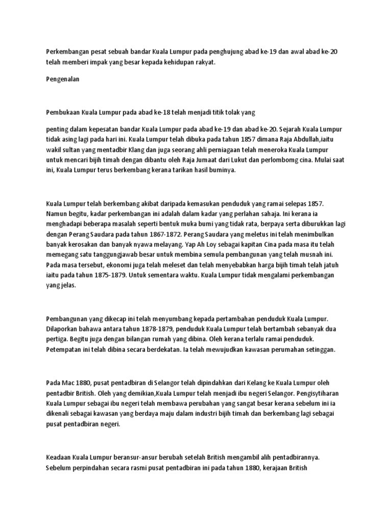 Perkembangan Pesat Sebuah Bandar Kuala Lumpur Pada Penghujung Abad Ke Pdf