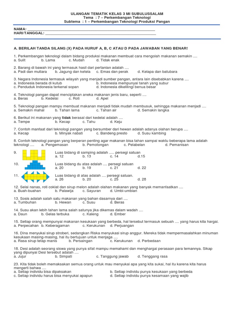 Soal Tematik Kelas 3 Sd Tema 7 Subtema 1 Perkembangan Teknologi Produksi Pangan K13 Revisi 2018 2019 Infoloh Com